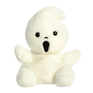 Boo Ghost is a white ghost Palm Pal with black button eyes, an embroidered black mouth and a pointed head. He has tiny, outstretched arms and little, found feet.